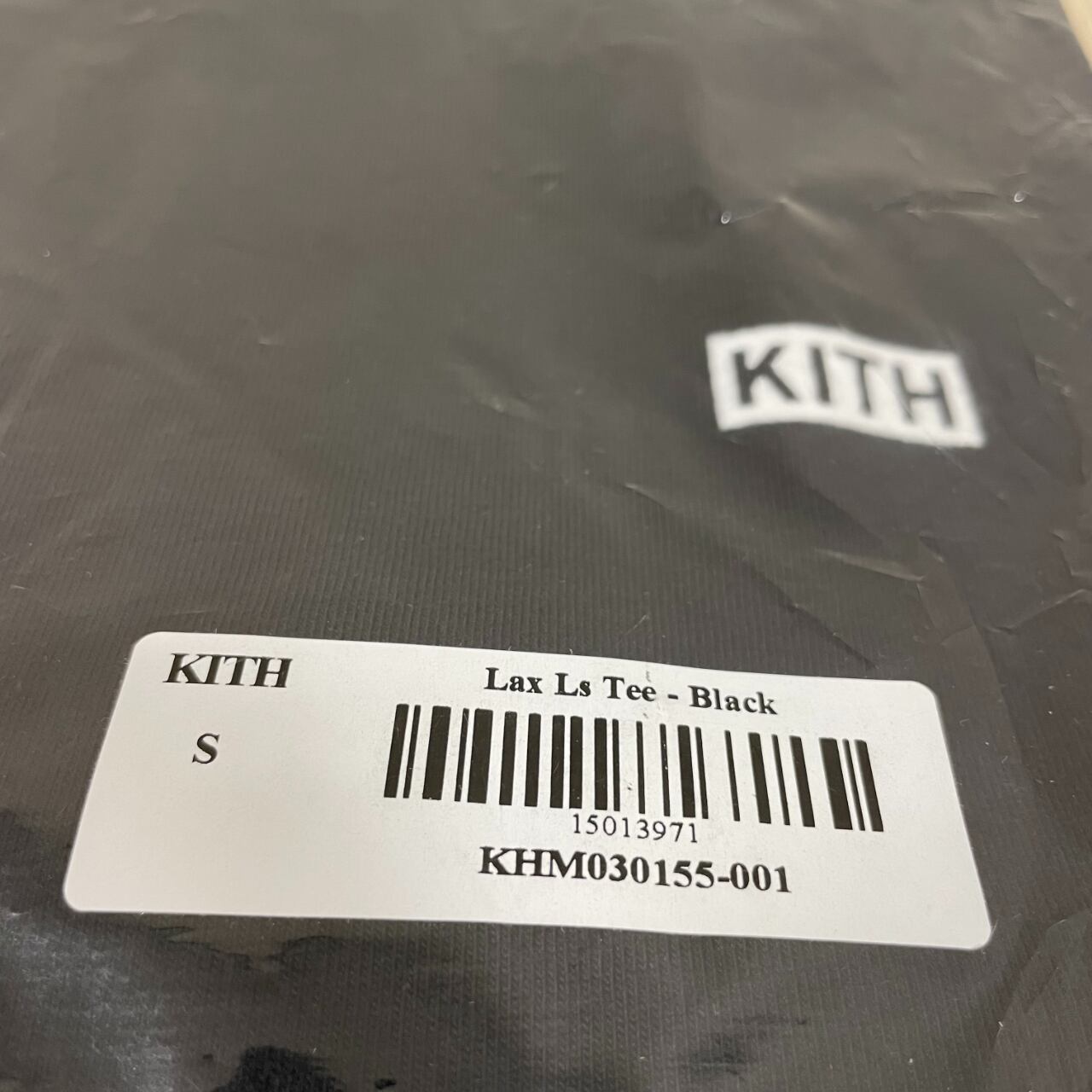 フロッキープリントのボックスロゴがアクセントのKithの定番Laxシリーズの長袖Tシャツ。