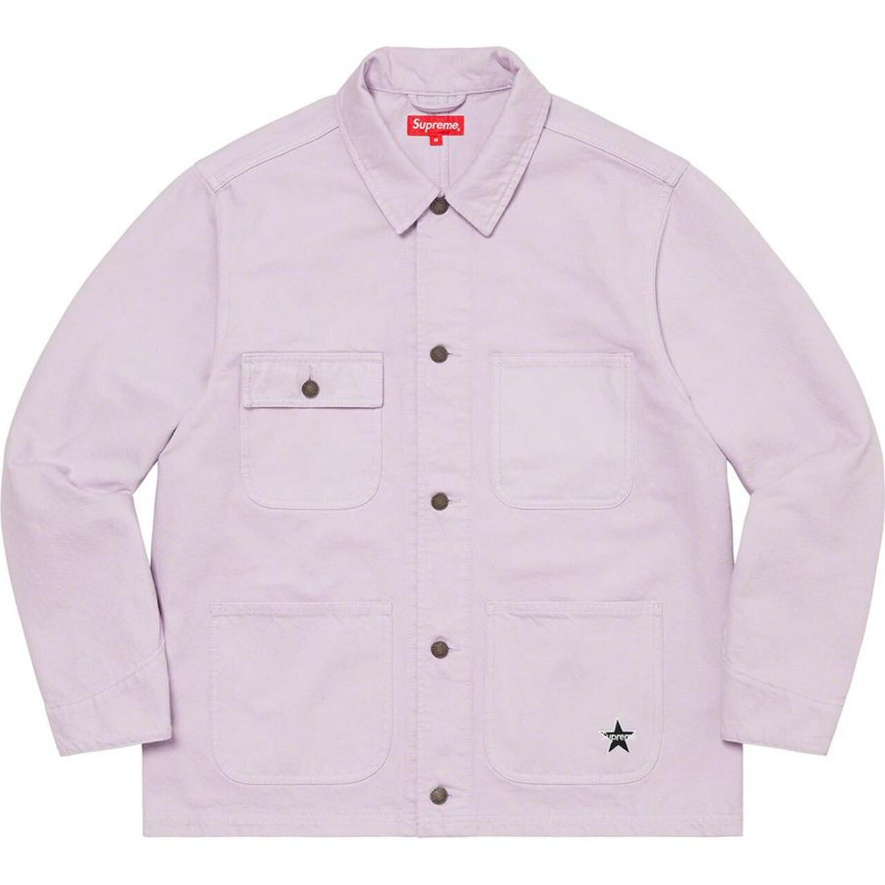 ポケットにスターロゴを刺繍で施した、13オンスデニム素材のシンプルなカバーオールジャケット(チョアコート)。