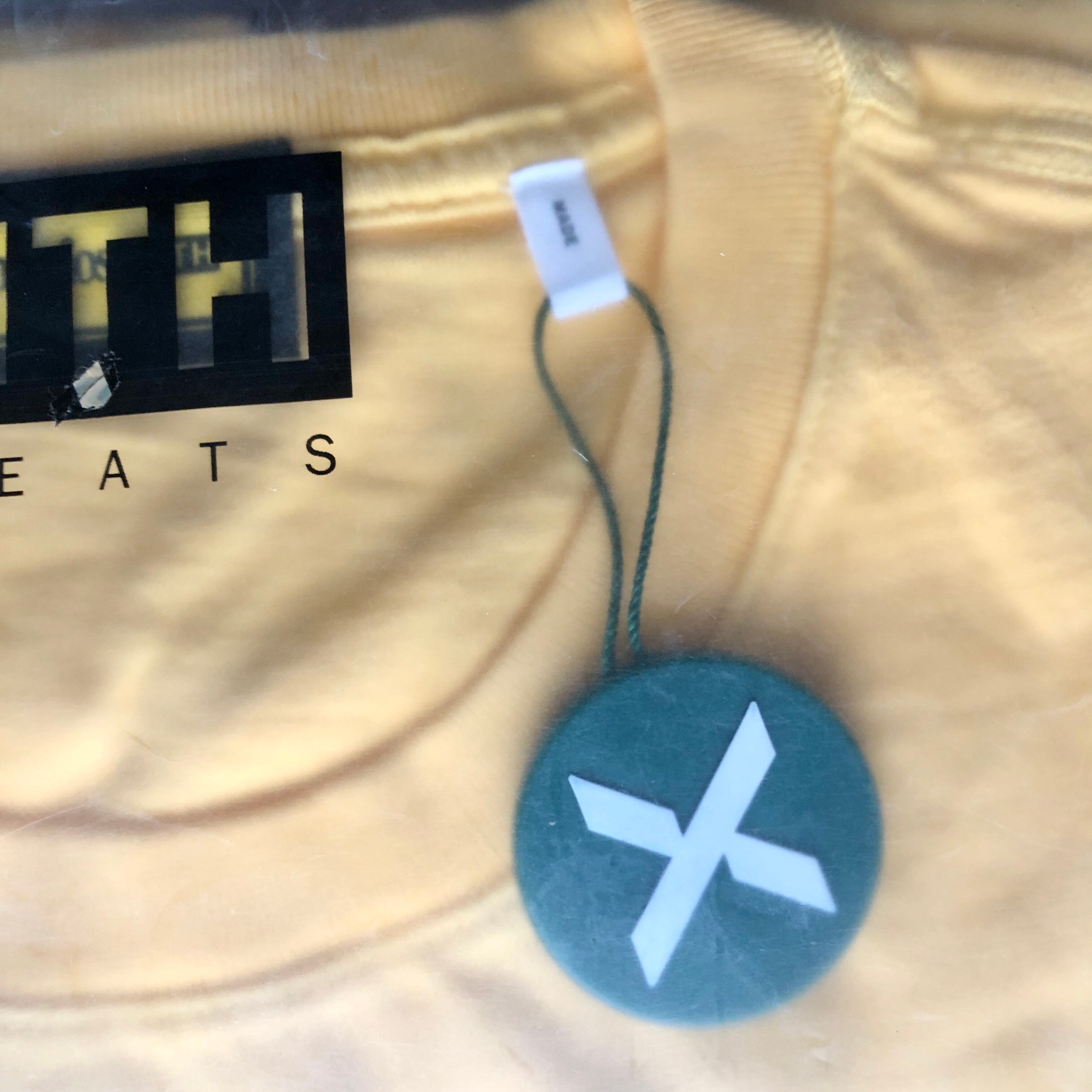 見た目にも甘~いハチミツカラーにCheeriosのロゴとKITHのボックスロゴをデザイン、さらにヴィンテージウォッシュド加工を施しヴィンテージの風合いで仕上げているので、どこか上品さを感じさせる仕上がりに。