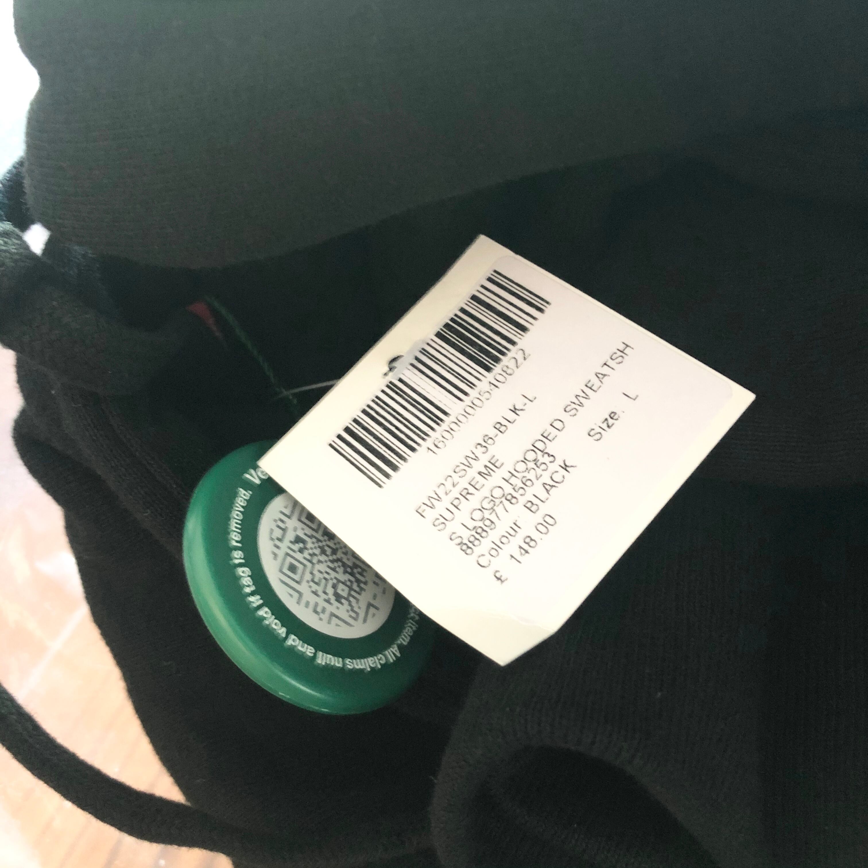 フード頂部にSupremeのロゴが刺繍で、裾に同色のピスタグをあしらい、腹部にはポーチポケットが付いている。