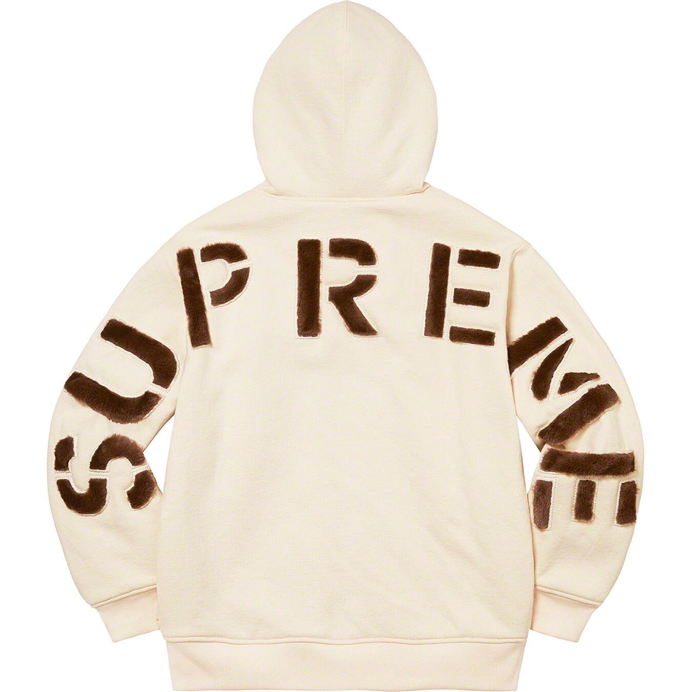 背面にはフェイクファーをレーザーカットしたSUPREMEロゴを大きくあしらっており、ロゴもファーでデザインしている遊び心あふれる1枚。