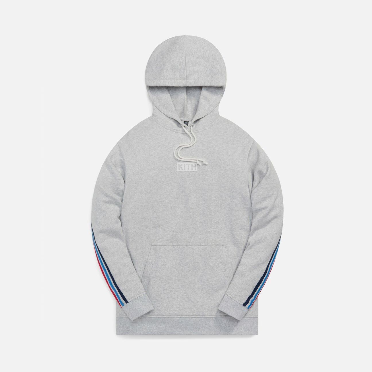 KITHのボックスロゴとAdidasを象徴するアイコニックなスリーストライプスが、両ブランドのコラボだと誰もが一目でわかるお目立ちデザインが特徴。